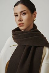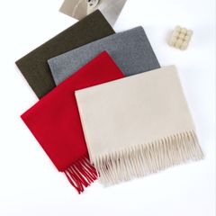 フリンジ付きで巻くだけで華やかに見える色合いです。