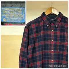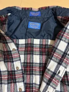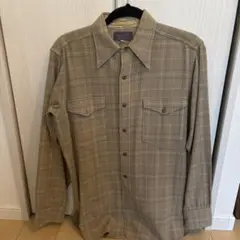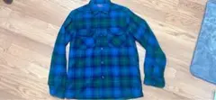 100%ピュアバージンウール製のチェック柄ネルシャツ、Lサイズ。