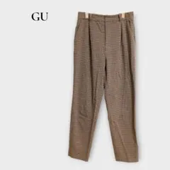 GU【XL】起毛タックテーパードパンツ ウエストゴム カーキ カジュアル 無地