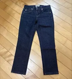 ホームクリーニング&家族宅でのクローゼット保管品です。4~5回着用したそうですが私見ではまだまだ綺麗に着られると思います。写真ではダークブルーに見えますが実際はややウォッシュ加工されたブラックです。
