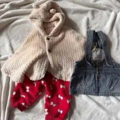#ミキハウス #子供服 #ベビー #出産祝い #ポンチョ #クマ #フワフワ #冬 #.ベージュ #.無地