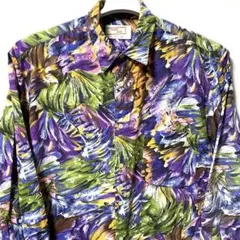 ヴィンテージ 柄シャツ 総柄 シルク混 日本製 光沢感 L パープル