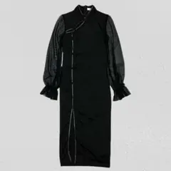 TINA JOJUN 黒地小花柄長袖タイトワンピース