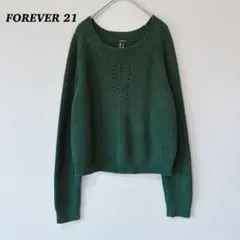 FOREVER21 ミントグリーン ケーブルニットセーター 長袖 かぎ編み