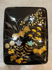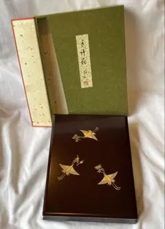 輪島塗水仙紋蒔絵 硯&水滴付き 昭和 共箱 W13×D24×H4㎝
