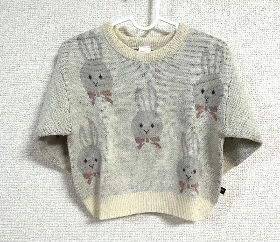 可愛らしいウサギのデザインが特徴のニットセーターです。柔らかい色合いで、どんなコーディネートにも合わせやすいアイテムです。