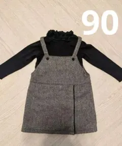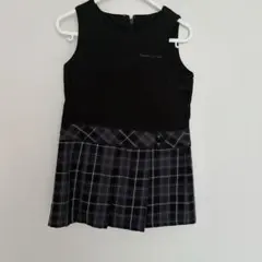 黒と白のチェック柄のカーディガンとワンピースのセット。フリル付きで可愛らしいデザイン。