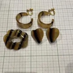 イヤリングとピンブローチは、もともとはセットではありませんが、素材とデザインが似ているので、まとめて出品してます。どちらもシンプルなデザインですが、さりげない上品さがあるので、一緒につけても違和感がなく、むしろコーデに統一感を持たせてくれるアイテムでした。