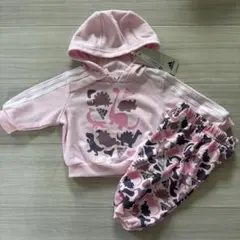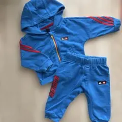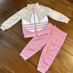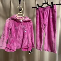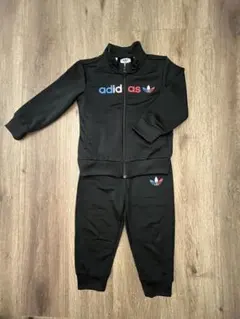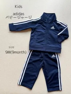 adidasのネイビーのジャージ、ポリエステル100%で快適な着心地。