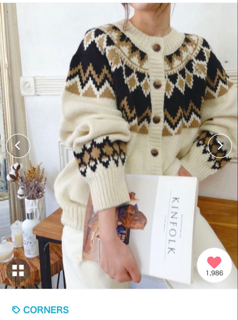 専用/CORNERS 前後2way ノルディック柄ニットカーディガン