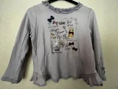 ストライプ柄とレースが特徴の140サイズの長袖カットソー。