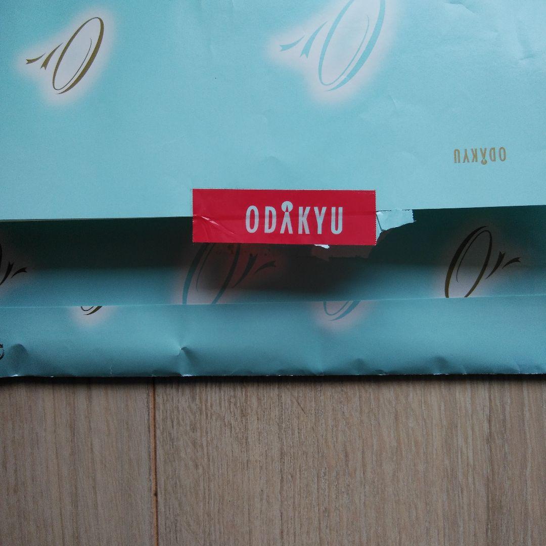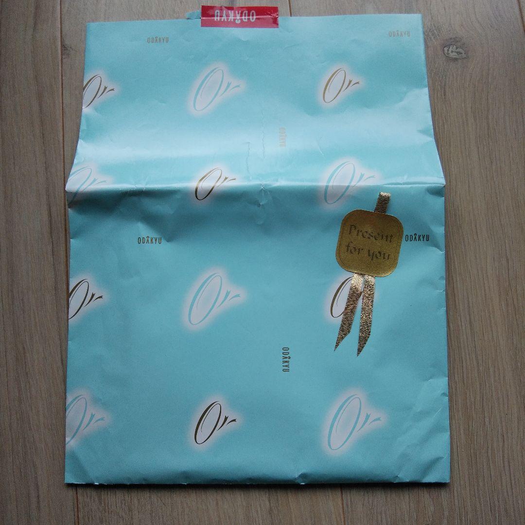涼しげな大判ハンカチ。小田急の袋はキズあります。