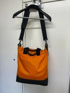 ネイビーとホワイトのチェック柄のナイロン製ショルダーバッグ。調整可能なストラップとファスナー付き内ポケット付き。