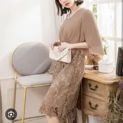 シンプルなデサインですが、胸元に施されたレースが全身を明るく見せてくれます!