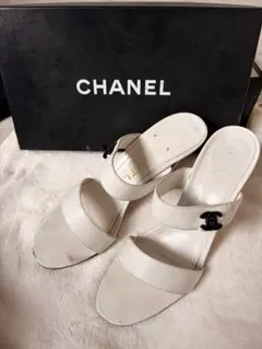 良品 CHANEL シャネル ココマーク レザーサンダル ミュール ブラック