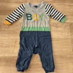 ピンクと白のドット柄ロンパース、フロントポケット付きで可愛いデザインです。