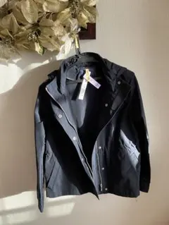 開閉はスナップボタン。両面に左右ポケット有。フードはファスナーで取外し可。