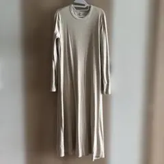 UNIQLO ベージュ 長袖カットソーワンピース M ワッフル素材