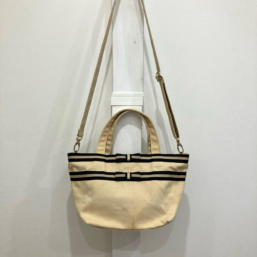 上品ストライプリボン 2wayキャンバストートバッグ