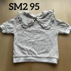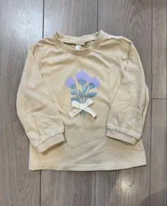 クリーム色のワッフル生地にバスの刺繍が施された95サイズのトレーナー。
