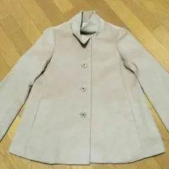 ウール混紡のグレーのピーコート、Lサイズ、シンプルでスタイリッシュなデザイン。