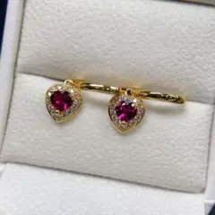 耳元でキラリと輝くガーネットのピアスです。