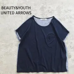 BEAUTY & YOUTH ネイビー 半袖 トップス プリーツ シンプル