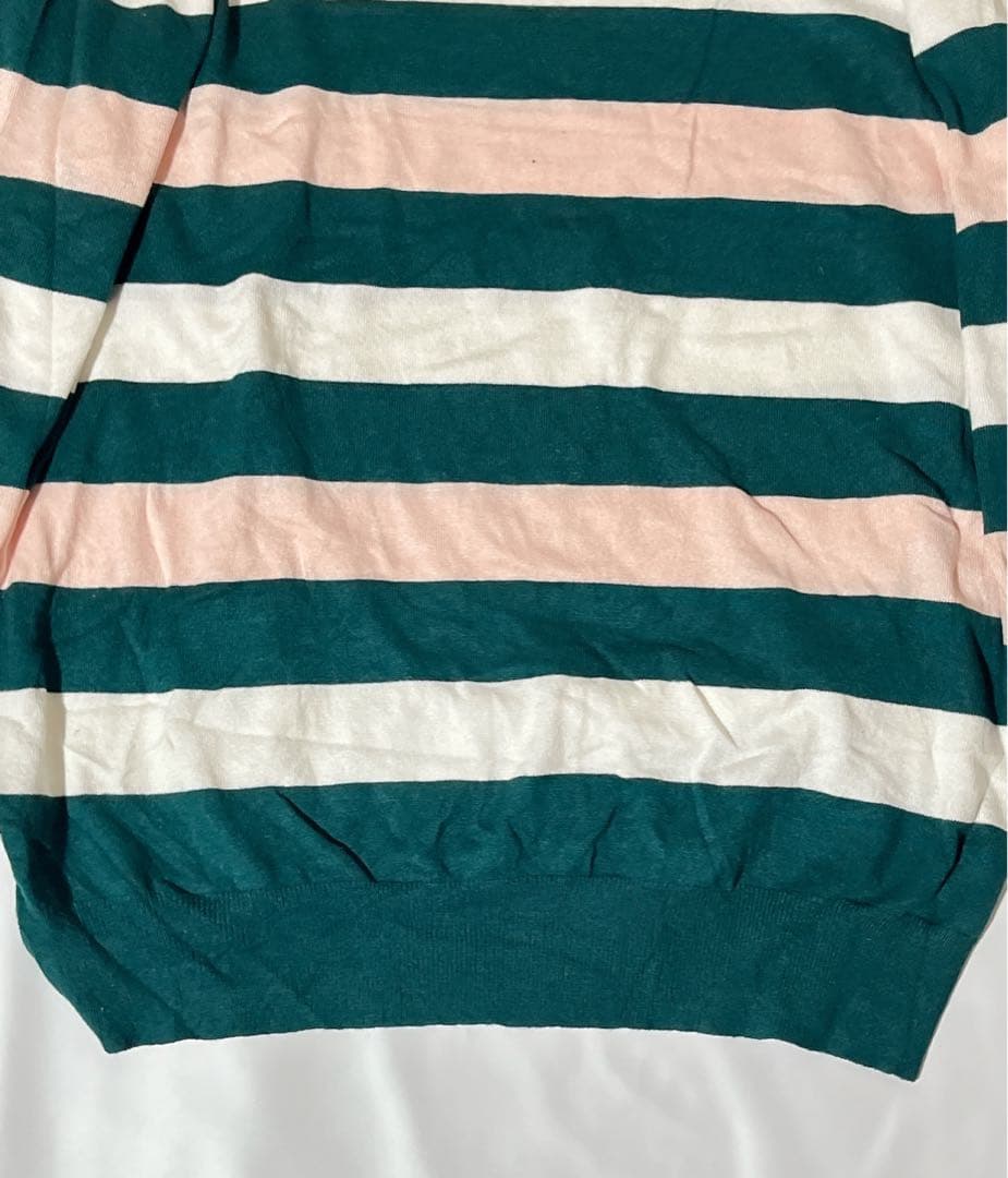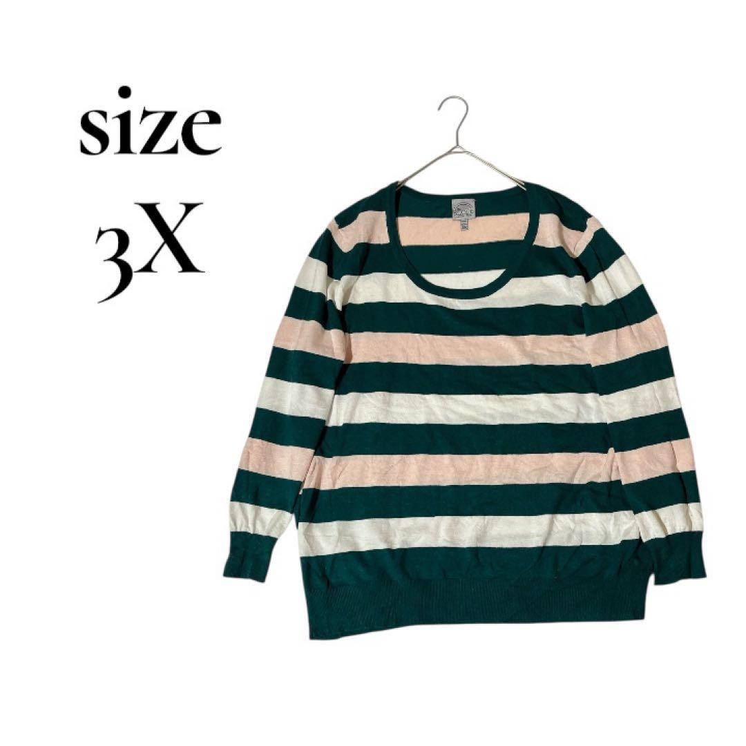 緑・ピンク・白のストライプデザインの3Xサイズセーター。