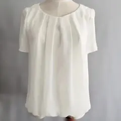 ナチュラルビューティー ブラウス 半袖 ゴージャス袖 ホワイト キレイ目