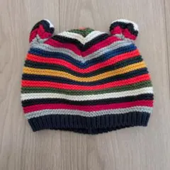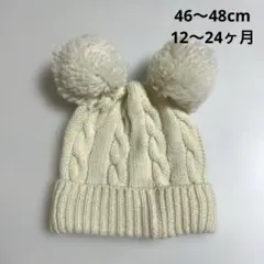 ポンポン付きの可愛い淡いピンクのニット帽、サイズXS/Sで赤ちゃんにぴったり。