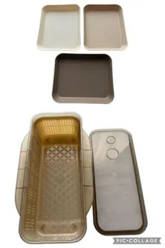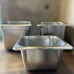 ステンレス製の丸型ポットと角バットです。