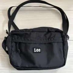 コーデュロイ素材のブラックショルダーバッグ、外ポケット付き。