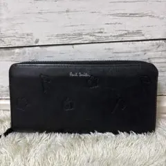 ポールスミス 長財布 グレージュ レザー ラウンドジップ マルチストライプ