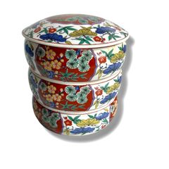 有田焼 哲山作 三段重 蓋付き小鉢 重ね鉢 色絵 四君子 古伊万里 菓子器 和柄