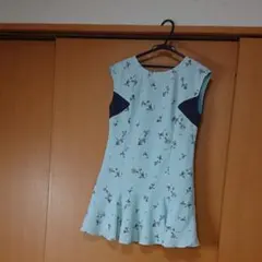 淡いベージュと水色が、優しくて落ち着いた印象をも足せるワンピースです。