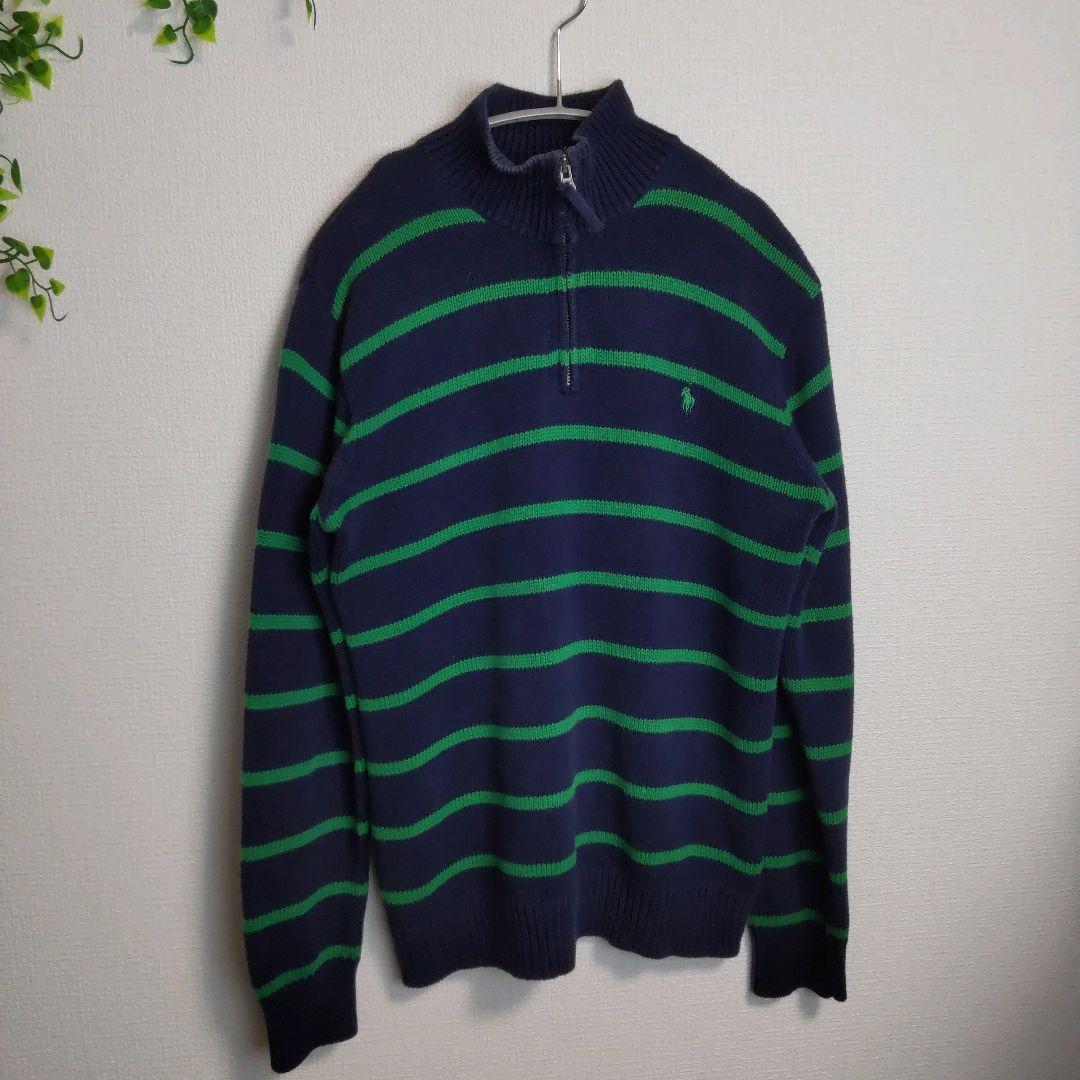 ラルフローレン ハーフジップ 刺繍ロゴ ボーダー ニット セーター