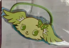 水色のキャラクターイラストが施されたJewelpetのファー付きハートチャーム付きアイテム。