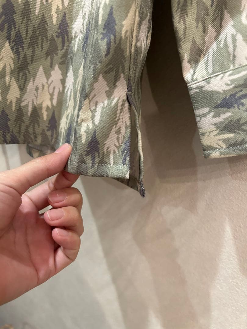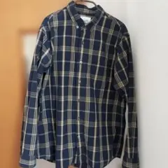 木の模様が特徴的なグローバルワークのメンズ長袖シャツです。