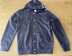 鮮やかなオレンジ色のアディダスフード付きパーカー、左袖に特徴的な3本のストライプ。