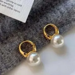 ゴールドフープ ホワイトパールのピアス バロックパール