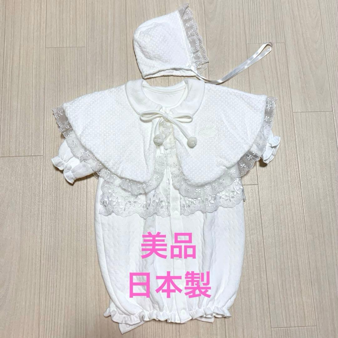 【美品】【日本製】新生児 セレモニードレス ケープ秋冬3点セット 50-60cm