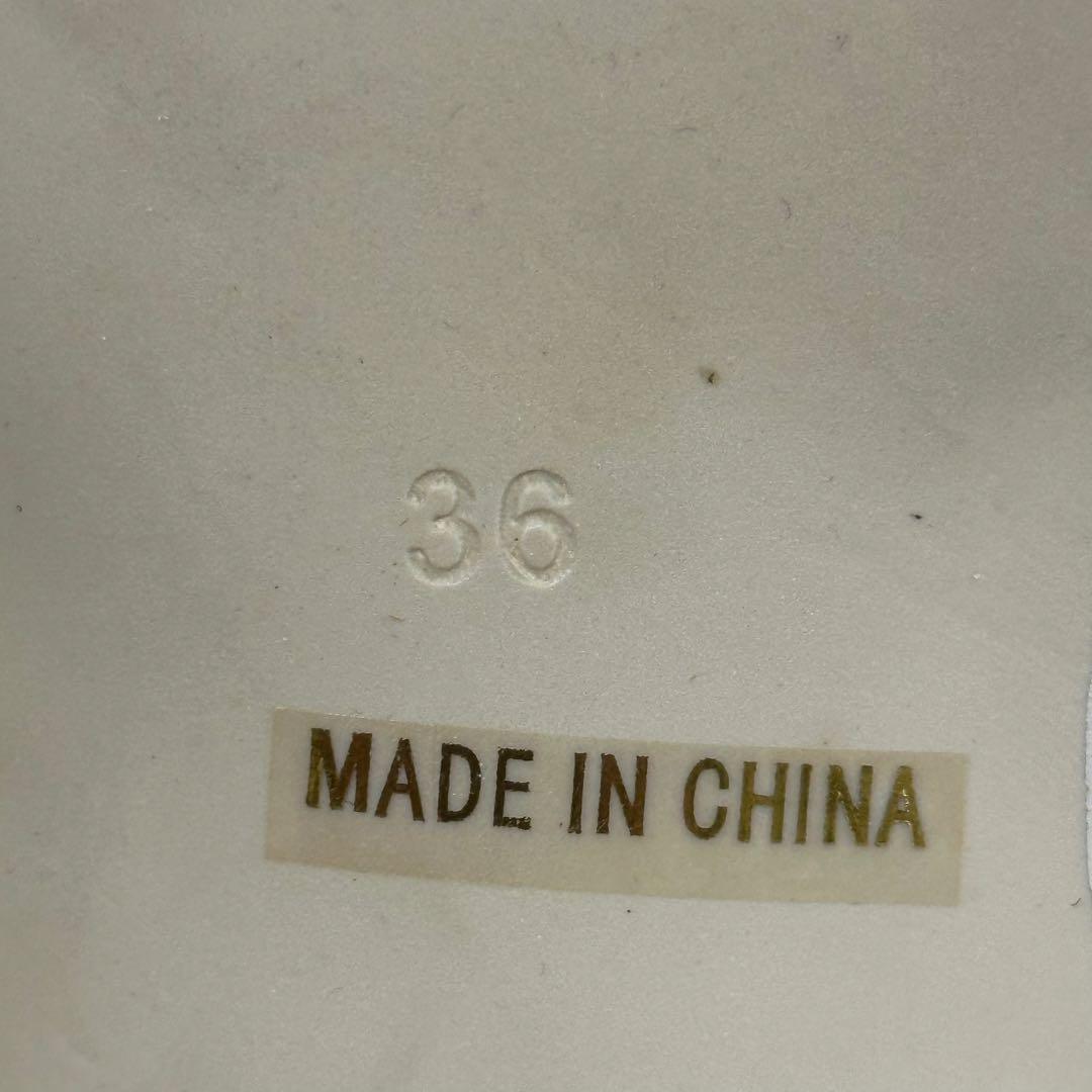 合成皮革製のホワイトオープントゥスライドサンダル。中ヒールで快適な履き心地。
