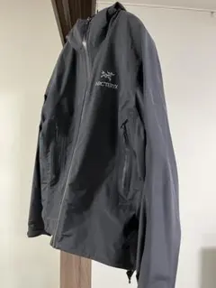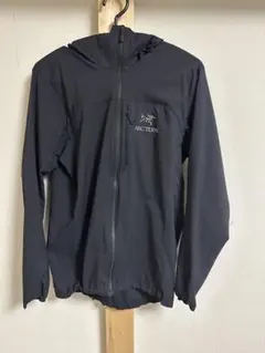 ARC'TERYXの防水レッドマウンテンパーカー、Mサイズ、フード付きで機能的。