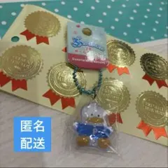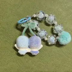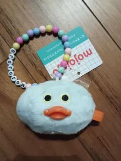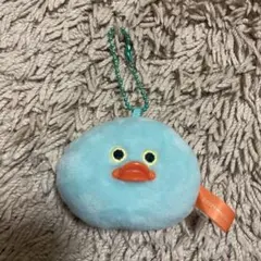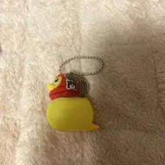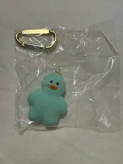 アヒルさんのキーホルダー、花と緑の帽子デザイン。