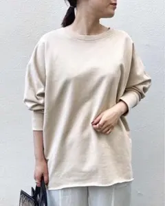 GALLARDAGALANTEのベージュ系トレーナー、リブ編みの袖口が特徴です。
