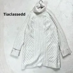 【Tiaclasse】配色長袖ハイネックニット プルオーバー レーヨン混 L