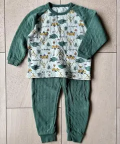 ミントグリーンにオレンジ色の花柄が可愛い、フリース生地のあったかパジャマです。