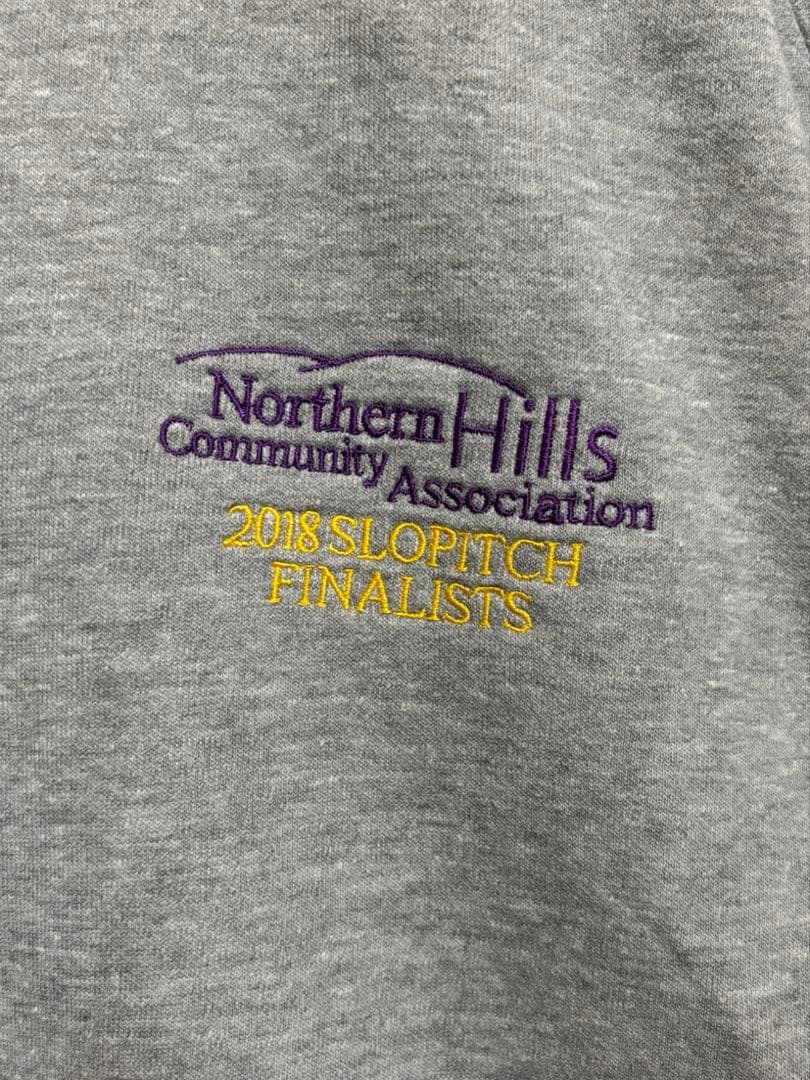フロントポケット付きのグレーのトレーナー、Northern Hills 2018の刺繍入り。