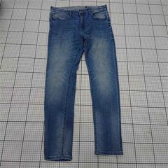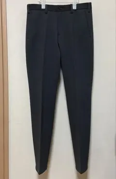 ネイビーのスキニーパンツ、ボタン付きでポケットあり。