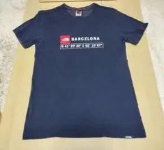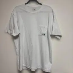ベージュのTHE NORTH FACE Tシャツ、刺繍ロゴ付き。